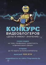 В рамках подготовки к проведению в Республике Беларусь Недели финансовой грамотности детей и молодежи (Global Money Week), которая в этом году пройдет с 22 по 28 марта 2021 г., Национальный банк объявил о проведении конкурса видеоблогеров. Тема конкурса ”Береги себя и свои деньги“. Подробная информация о конкурсе (сроки и порядок его проведения, требования, предъявляемые к участникам и их конкурсным работам, и др.) размещена на Едином интернет-портале финансовой грамотности населения http://fingramota.by/ru/about/events/blogers/188.
