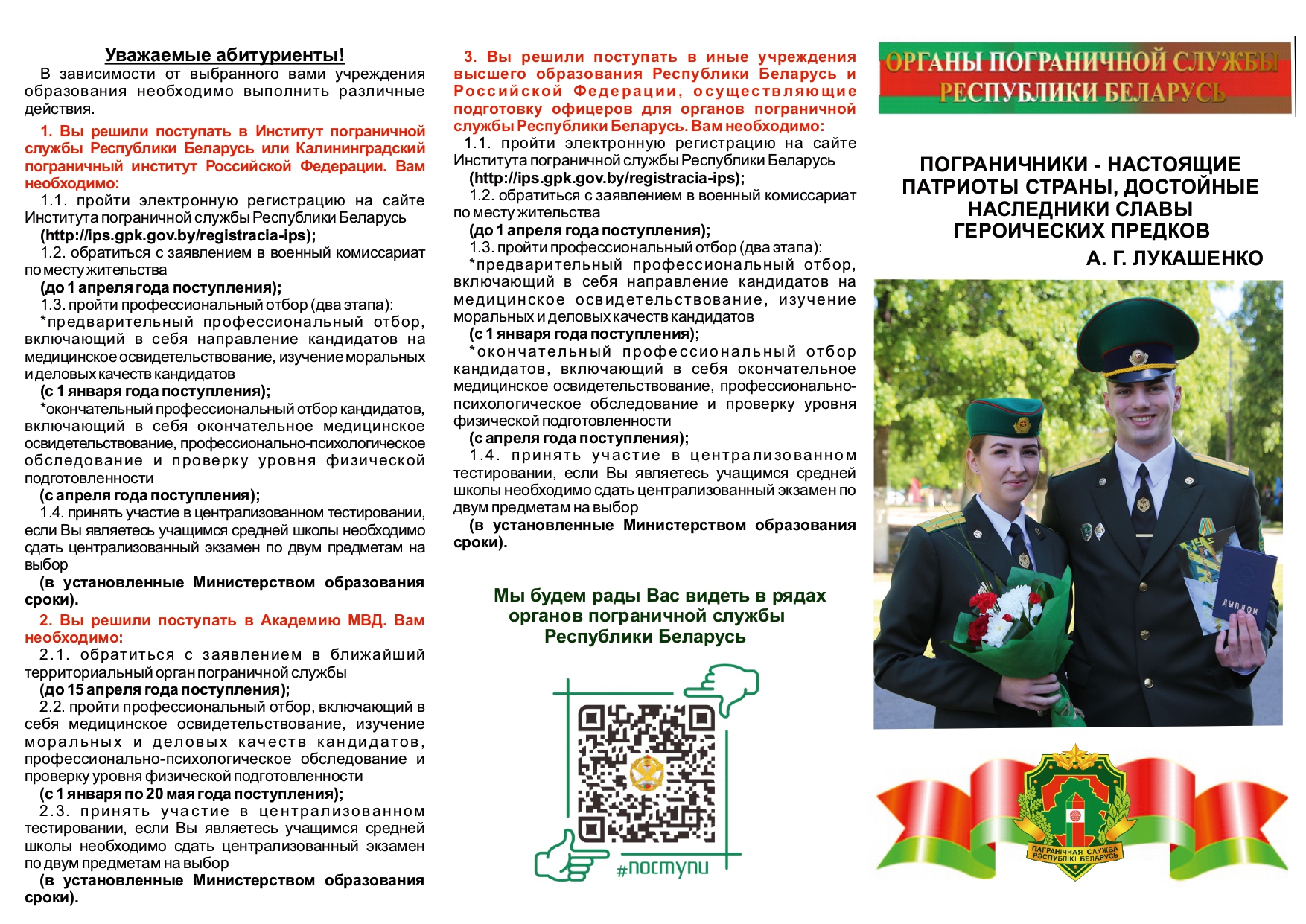 ВСТУПИТЕЛЬНЫЕ ИСПЫТАНИЯ В ФОРМЕ ЦЕНТРАЛИЗОВАННОГО ТЕСТИРОВАНИЯ: по белорусскому или русскому языку (на выбор), а также по двум предметам профильного испытания: математике и физике.